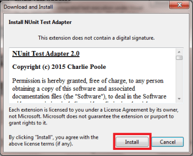 Once the installation is done, install the NUnit test adapter for visual studio