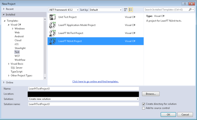 Select LeanFT NUnit template