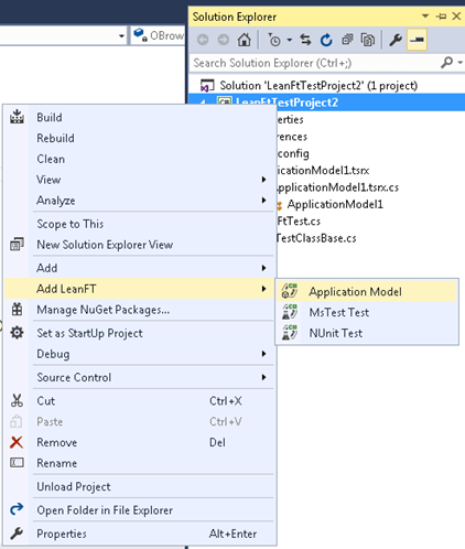If you have added the application model within the LeanFT’s NUnit or MSTest projects then you can directly start using the application model.
