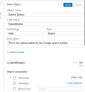 4. Once you select the technology and the type of the object, you will see the list of properties populated for the object.