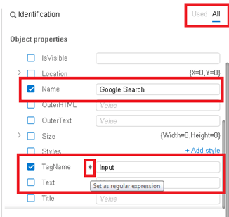 6. You can provide regular expressions, by clicking on the star next to the value textbox.