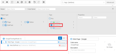 When you have a bigger application model, you can take advantage of the searching feature of the application model to locate the objects. You can also add tags to the objects to group similar objects. Later you can use these tags for searching the objects.