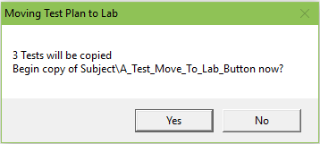 result = MsgBox(OTestList.Count & ” Tests will be copied” & vbCRLF & “Begin copy of ” & TestPlanFolderPath & ” now?”,vbYesNo,”Moving Test Plan to Lab”)‘Find if user wants to continue