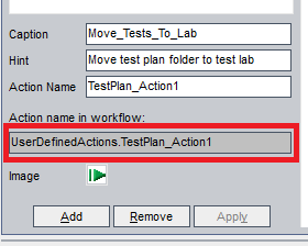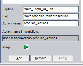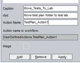 Change the Caption to Move_Tests_To_Lab and add the Hint as “Move test plan folder to test lab”.